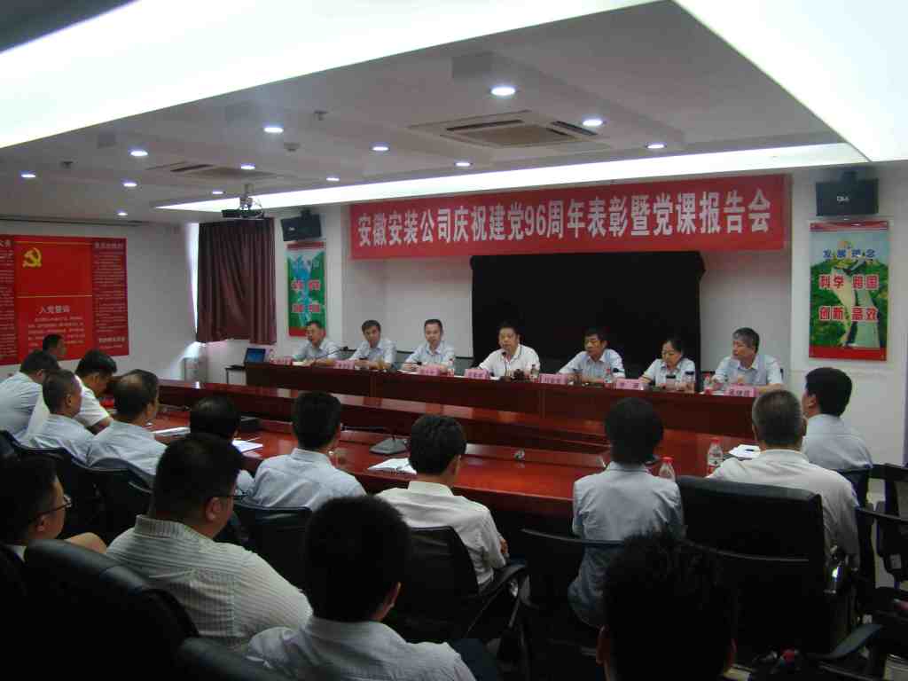 6月29日下午,安徽安裝公司召開(kāi)慶祝建黨96周年表彰大會(huì )暨“七一”專(zhuān)題黨課活動(dòng),公司領(lǐng)導班子、在肥在崗黨員、入黨積極分子以及受表彰的先進(jìn)集體、先進(jìn)個(gè)人等60余人參加了會(huì )議。會(huì )議由公司董事長(cháng)、總經(jīng)理、黨委副書(shū)記王軍邦主持。