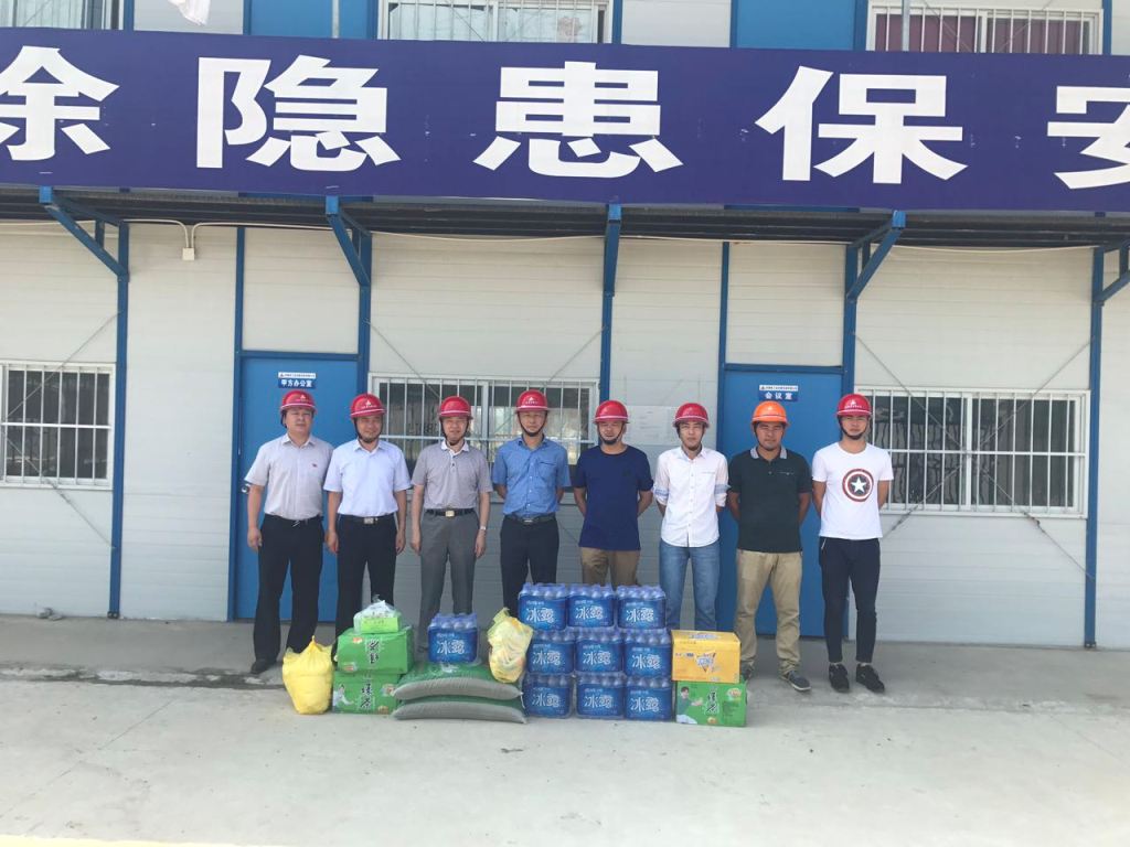 7月26日上午,正值高溫酷暑時(shí)節,為保證施工在項目一線(xiàn)員工的身心健康,公司黨委書(shū)記、副總經(jīng)理胡六中,紀委書(shū)記、工會(huì )主席李寬旭赴第四分公司廬江縣報廢汽車(chē)綜合利用項目一期工程項目部,為一線(xiàn)員工帶去關(guān)懷和關(guān)愛(ài),并送去夏季防暑降溫物品。第四分公司經(jīng)理趙永峰、分公司黨支部書(shū)記王偉陪同。