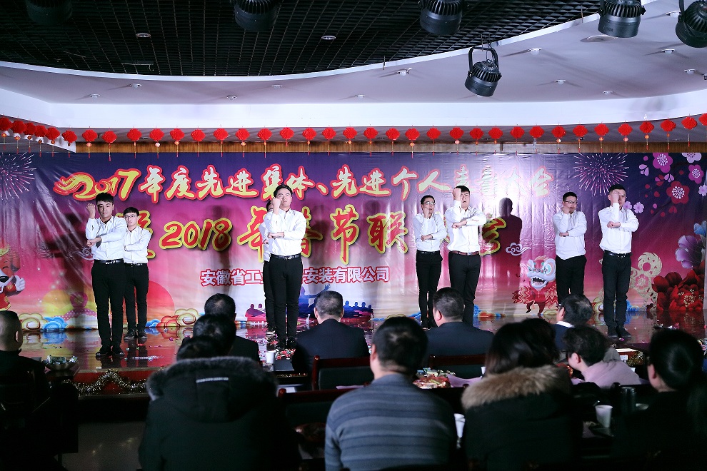 彩鳳辭舊歲,金犬迎新春。2月8日下午,安徽安裝公司2018年迎新春聯(lián)歡會(huì )如期舉行。公司領(lǐng)導及全體員工200余人歡聚一堂,共迎新春佳節,共享節日喜悅!