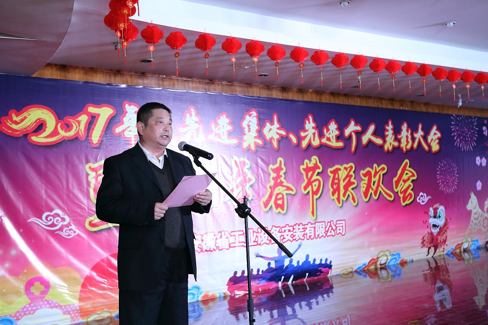 公司董事長(cháng)、總經(jīng)理王軍邦發(fā)表了熱情洋溢的新年致辭。他指出,2017年,集團公司整體上市成功,公司作為集團產(chǎn)業(yè)鏈安裝板塊的重要一環(huán),順利實(shí)現整體上市。公司上下緊扣發(fā)展第一要務(wù),聚精會(huì )神抓黨建,一心一意謀發(fā)展,團結奮進(jìn),扎實(shí)工作,實(shí)現產(chǎn)值12.28億元,合同額15.52億元,利潤突破千萬(wàn)元,創(chuàng )歷史新高;新疆市場(chǎng)進(jìn)一步開(kāi)拓,承接了安裝公司有史以來(lái)最大的新疆烏蘇管廊項目3.59億元。在集團的大力支持下,中標新疆市場(chǎng)博爾塔拉蒙古自治州兩個(gè)PPP項目,共計39.79億元,全面超額完成年度各項指標任務(wù)。這些成績(jì)的取得凝聚著(zhù)安徽安裝人的心血和汗水,是我們眾志成城、頑強拼搏、砥礪奮進(jìn)的結果;2018年,讓我們統一思想、齊心協(xié)力,用智慧、靠實(shí)干、憑業(yè)績(jì),主動(dòng)作為,為開(kāi)創(chuàng )安徽安裝發(fā)展新局面而持續奮斗!