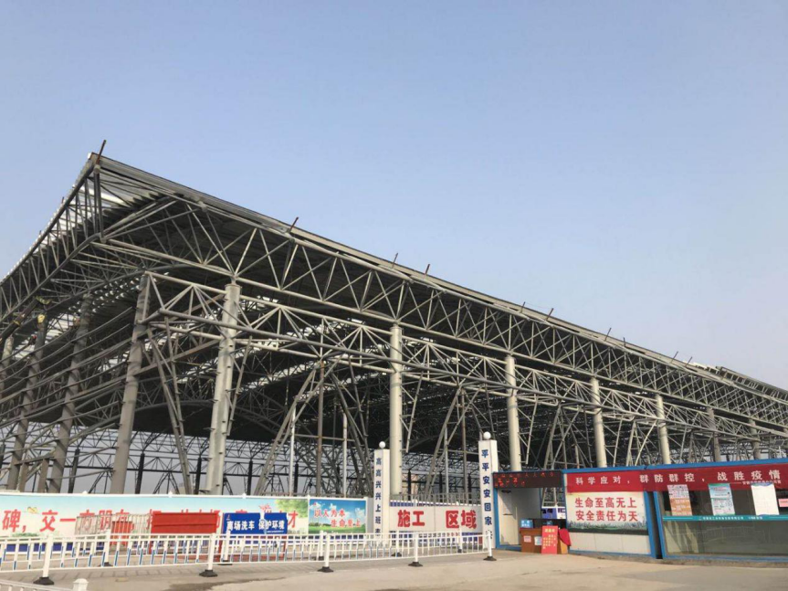 安徽省·水利部淮河水利委員會(huì )水利科學(xué)研究院淮河試驗研究中心(水工河工模型試驗廳)一期工程,水工河工模型試驗廳主要進(jìn)行各種水流模型試驗,通過(guò)整體水工模型試驗,率定泄洪閘、排沙孔泄流能力、描述進(jìn)出口水流流態(tài),對護岸范圍提出合理的防護方式,優(yōu)化泄洪消能建筑物布置和體型等發(fā)揮巨大作用。項目主要施工內容為新建水工河工模型試驗一廳鋼結構及附屬土建工程,建筑面積約20000㎡,基礎形式為長(cháng)螺旋鉆孔灌注樁,結構形式為排架柱(圓鋼管)+三肢管桁架結構,頂部成弧形空間結構形式,桁架跨度約100m,跨中為四聯(lián)拱(三角桁架),安裝高度最高24m,鋼材用量1800多噸,為目前安徽省建設第二大跨度的鋼結構工程。目前,該項目整體鋼結構建設已基本完成,主要施工內容是水電安裝、裝飾、幕墻各個(gè)分項建設。