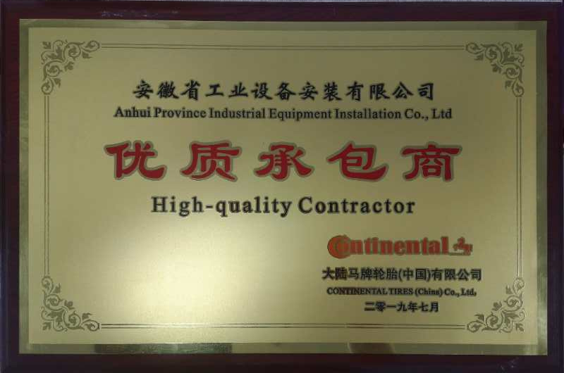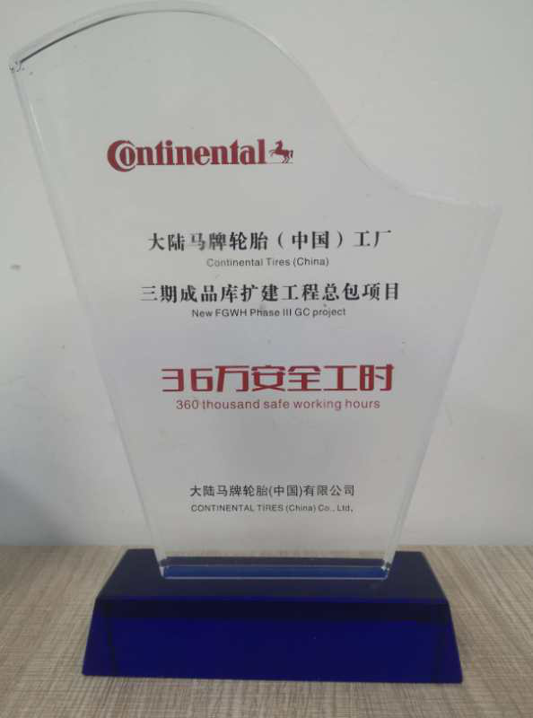 近日,大陸馬牌輪胎(中國)有限公司授予安徽安裝公司“優(yōu)質(zhì)承包商”獎牌和“36萬(wàn)安全工時(shí)”獎杯。