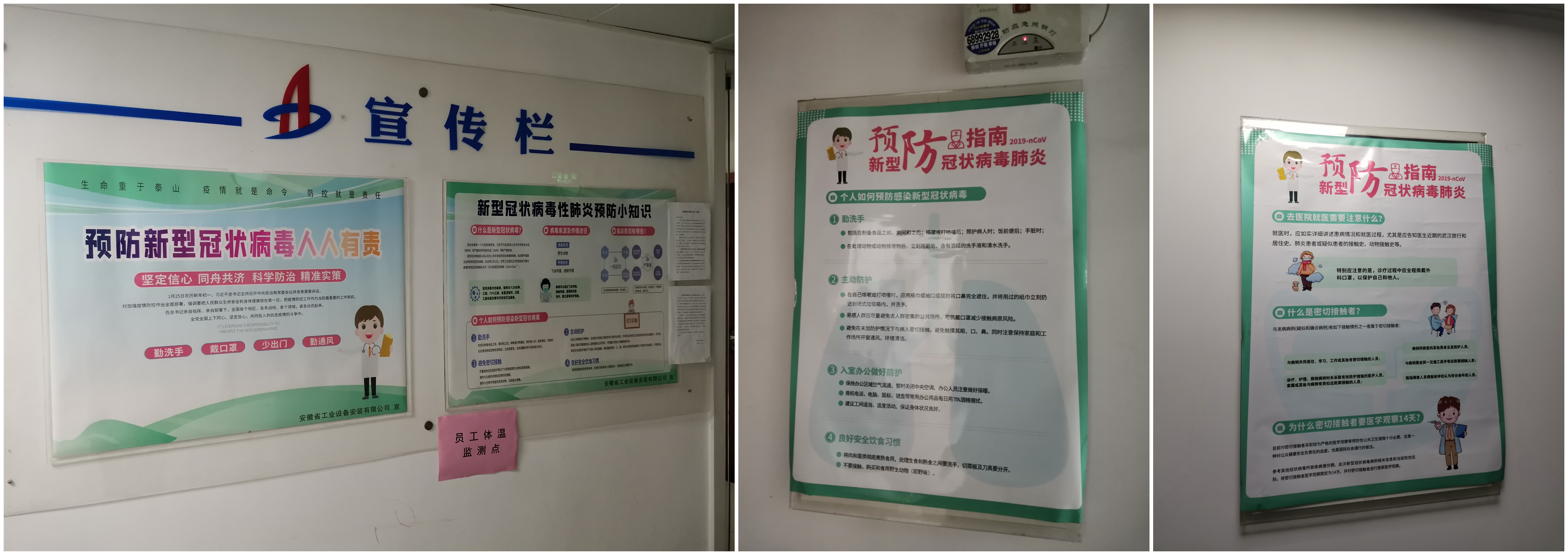 1月27日(大年初三),公司下發(fā)《安徽安裝公司關(guān)于做好新型冠狀病毒肺炎疫情工作的防控措施》,全體員工每日在釘釘日志專(zhuān)項報告當日去向及身體狀況,各分公司、各部門(mén)認真做好登記,確保信息及時(shí)準確,時(shí)刻密切關(guān)注員工的身體健康狀況。