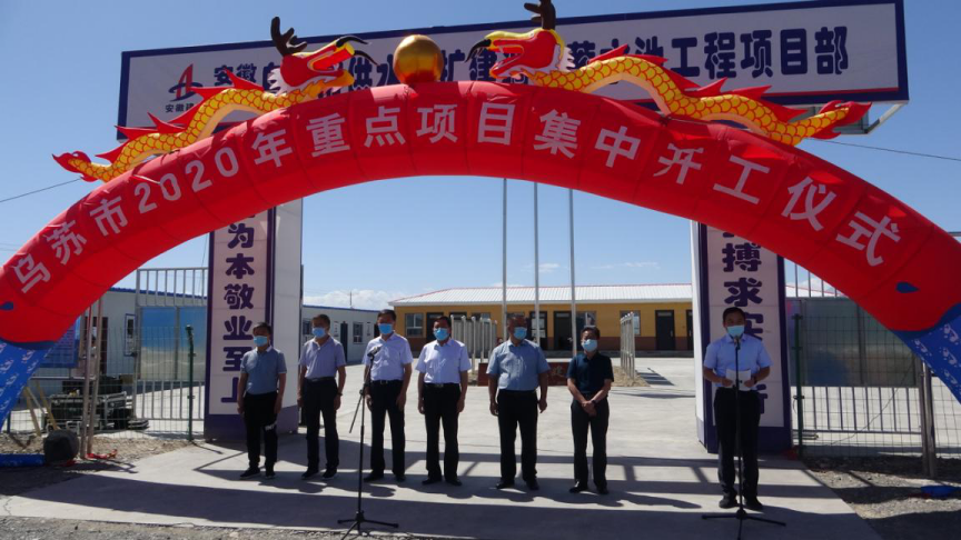 烏蘇市2020年重點(diǎn)項目集中開(kāi)工儀式在安徽安裝烏蘇供水改擴建調節蓄水池項目現場(chǎng)召開(kāi)