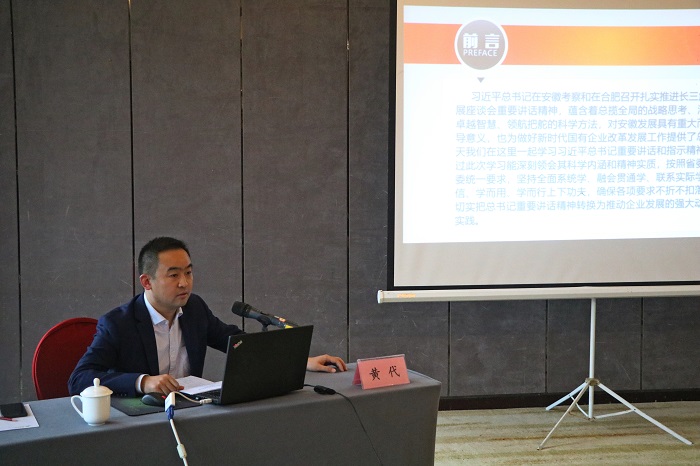 股份公司副總經(jīng)理黃代赴安徽安裝公司作習近平總書(shū)記考察安徽重要講話(huà)精神專(zhuān)題黨課報告