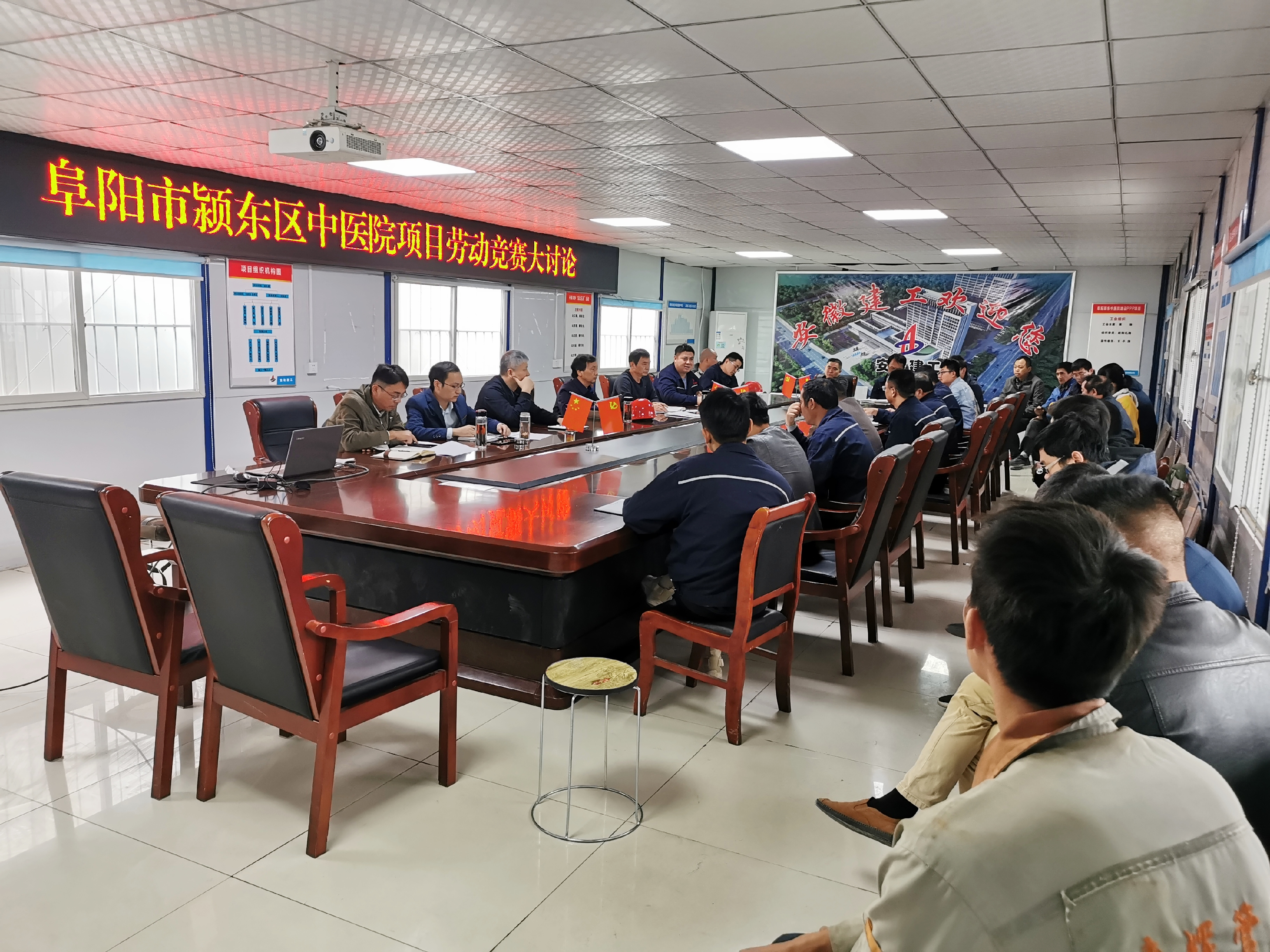為認真貫徹集團公司“戰疫情、搶工期、保目標、促超產(chǎn)”勞動(dòng)競賽活動(dòng)精神,11月5日上午,公司副總經(jīng)理高飛,紀委書(shū)記、工會(huì )主席李寬旭,總工程師吳繼成一行在阜陽(yáng)潁東區中醫院建設PPP項目部會(huì )議室,組織開(kāi)展“戰疫情、搶工期、保目標、促超產(chǎn)”勞動(dòng)競賽大討論,公司相關(guān)部門(mén)負責人、項目部全體人員30余人參加了會(huì )議,會(huì )議由李寬旭主持。