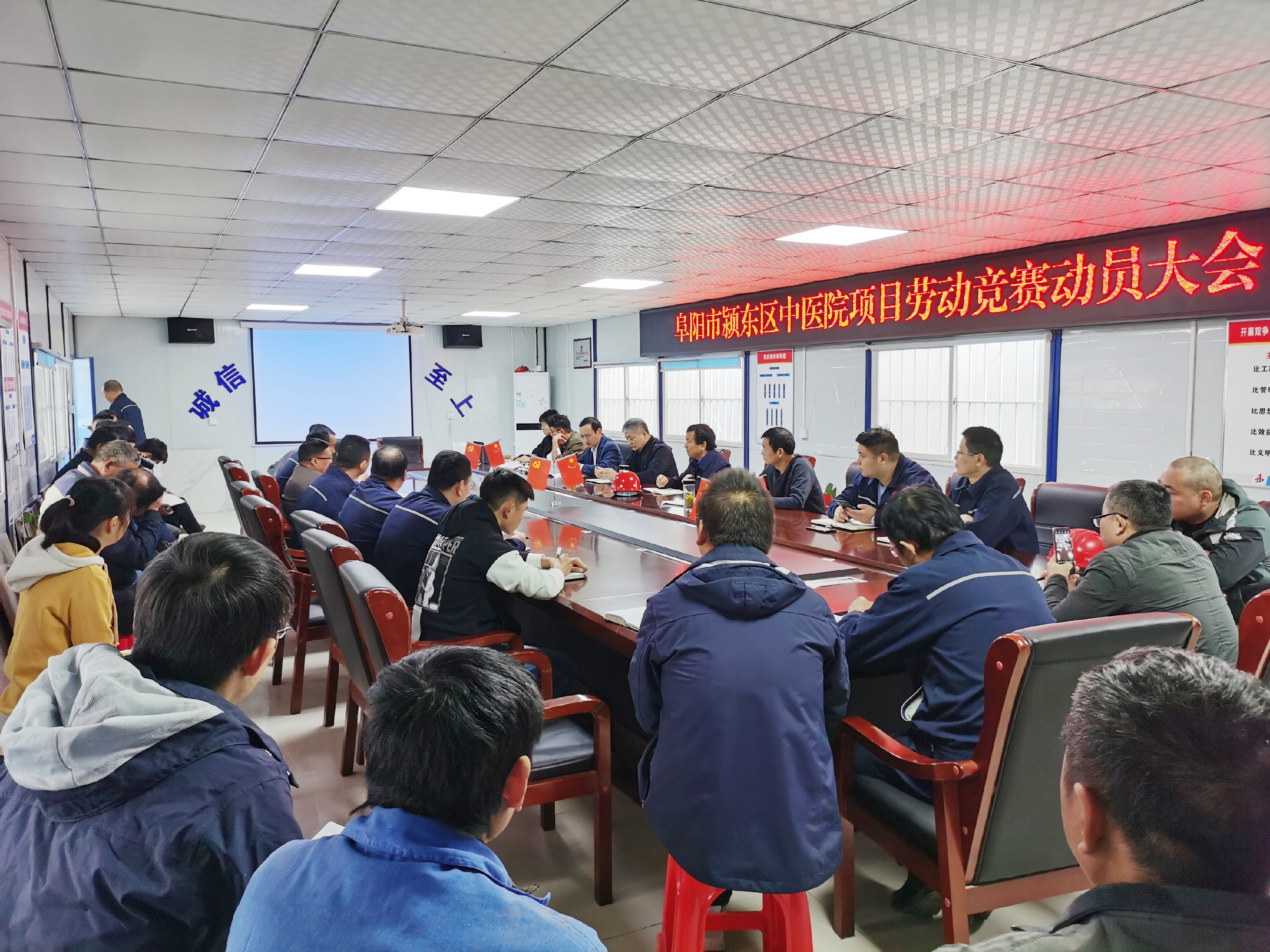 為確保年度各目標任務(wù)順利完成,貫徹落實(shí)集團公司開(kāi)展“戰疫情、搶工期、保目標、促超產(chǎn)”為主題勞動(dòng)競賽活動(dòng)精神,2020年11月5日上午,安徽安裝召開(kāi)阜陽(yáng)潁東區中醫院建設PPP項目“大干90天,確保2021年春節前二層以上工程量全部完工”勞動(dòng)競賽動(dòng)員會(huì )。公司副總經(jīng)理高飛,紀委書(shū)記、工會(huì )主席李寬旭,總工程師吳繼成,公司相關(guān)部門(mén)負責人、項目管理人員和施工班組長(cháng)共40多人參加了競賽動(dòng)員會(huì )。