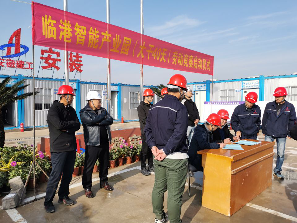 項目技術(shù)負責人宣讀了《關(guān)于組織蚌埠臨港項目“大干40天”勞動(dòng)競賽的實(shí)施方案》,明確組織機構、競賽時(shí)間、競賽范圍、責任劃分、節點(diǎn)目標、考核內容、獎罰措施等。
