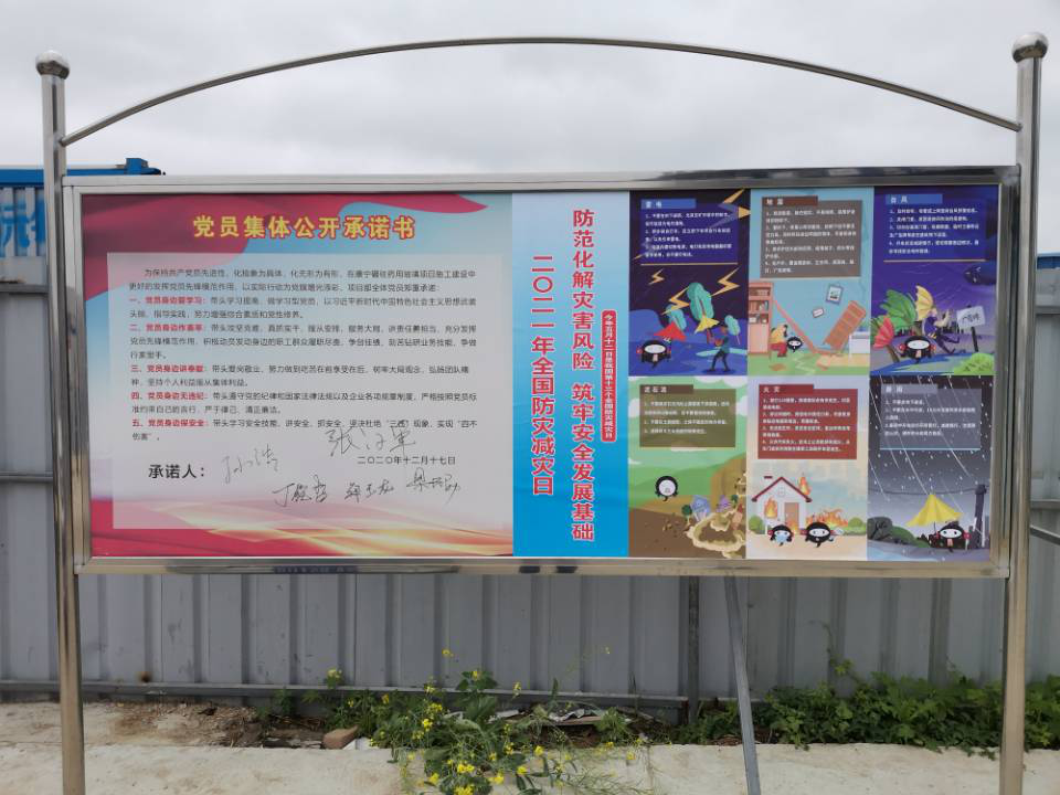 隨后,各項目通過(guò)開(kāi)展晨會(huì )安全教育、懸掛宣傳條幅、張貼宣傳海報、線(xiàn)上宣傳教育、社會(huì )公開(kāi)宣傳、防災減災專(zhuān)項隱患排查治理、應急物資檢查儲備等各項防災減災活動(dòng),向項目全體人員普及了自然災害以及人為災害對施工企業(yè)及施工項目帶來(lái)的各種影響,讓大家做到“行動(dòng)起來(lái),減輕身邊的災害風(fēng)險”。