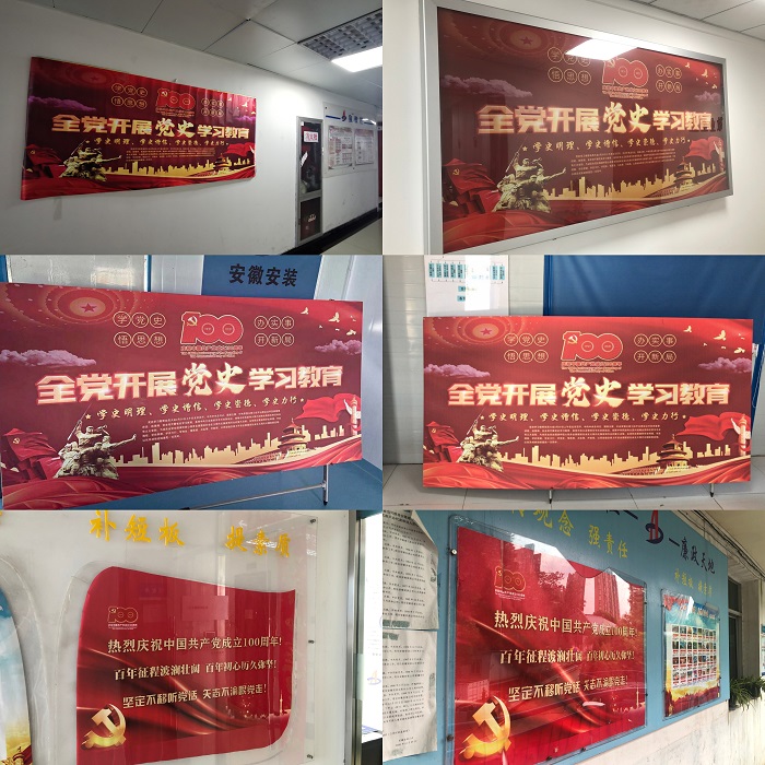 公司黨委第一時(shí)間編印專(zhuān)刊宣傳板報下發(fā)至所屬各單位和基層項目一線(xiàn),用好企業(yè)網(wǎng)站、微信公眾號、電子屏、宣傳欄和所屬各單位、各項目部所有宣傳陣地,在公司網(wǎng)站、微信公眾號先后開(kāi)設“百個(gè)瞬間說(shuō)百年”“黨史學(xué)習教育專(zhuān)欄系列報道”“榜樣的力量——安徽安裝公司先進(jìn)人物先進(jìn)事跡展播”“記錄奮進(jìn)力量—安徽安裝公司基層一線(xiàn)事跡展播”等專(zhuān)欄進(jìn)行專(zhuān)題宣傳,大力營(yíng)造“學(xué)習黨史有熱情,干事創(chuàng )業(yè)有激情”的良好氛圍,合肥分公司黨支部舉辦黨史學(xué)習教育主題攝影大賽,努力營(yíng)造悟初心、守初心、踐初心的強大聲勢。