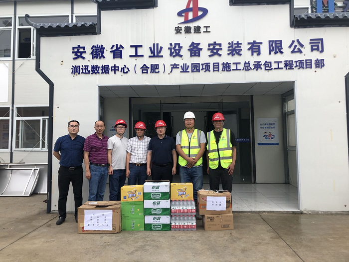 烈日炎炎,酷暑難當,6月16日,房建(裝飾)分公司黨支部書(shū)記王偉攜分公司工程管理部來(lái)到潤迅數據中心(合肥)產(chǎn)業(yè)園項目,看望和慰問(wèn)奮戰在一線(xiàn)的員工,為他們送去仁丹、藿香正氣口服液、十滴水、飲料、藥品等防暑降溫物品,實(shí)地察看了項目工地和職工生活區,并與項目同志進(jìn)行了座談交流。
