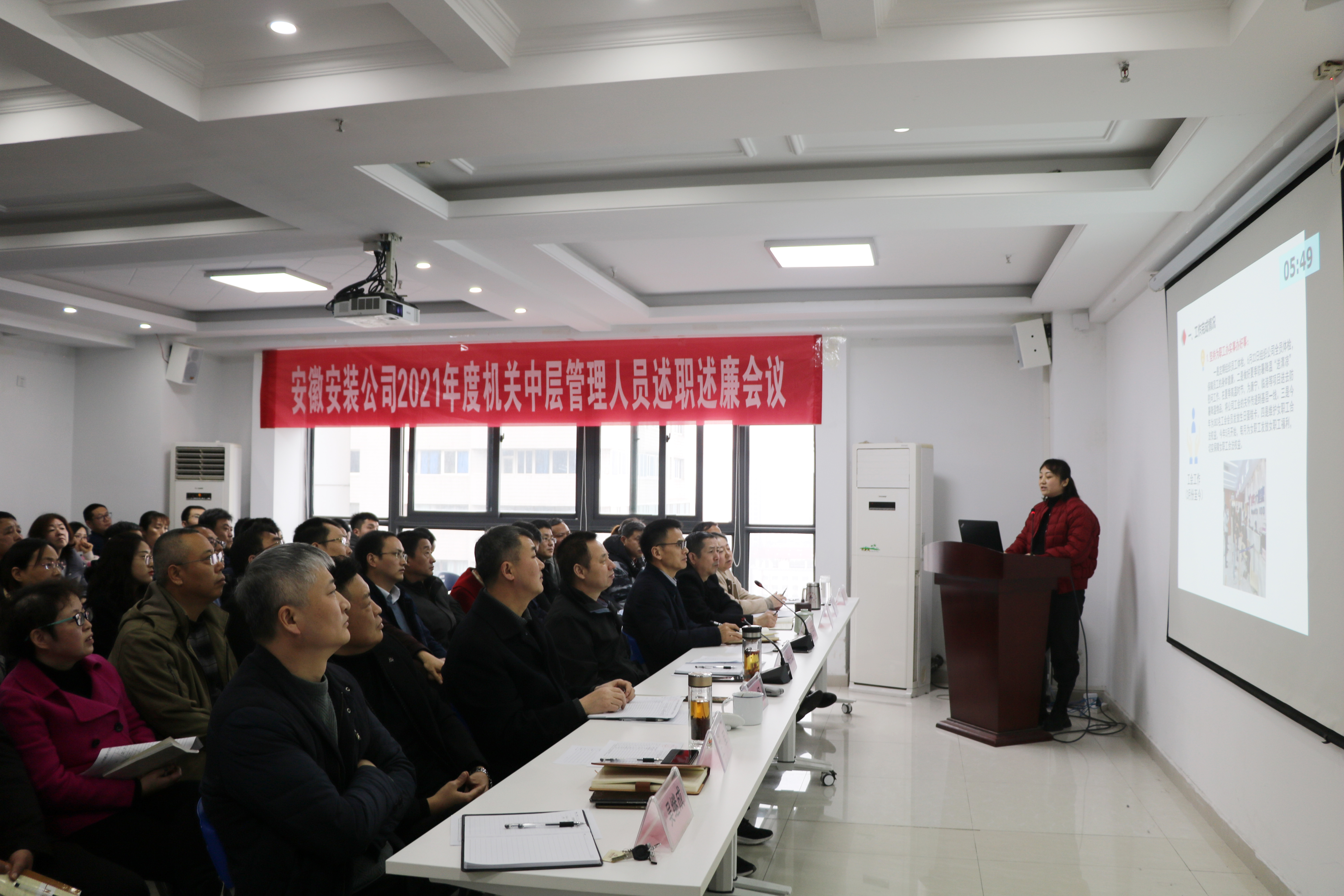 1月10日下午,安徽安裝公司召開(kāi)2021年度機關(guān)中層管理人員述職述廉會(huì )議。公司領(lǐng)導班子成員、機關(guān)中層管理人員、分公司黨政負責人、機關(guān)部門(mén)員工代表共70余人參加會(huì )議,公司黨委書(shū)記、董事長(cháng)胡六中主持會(huì )議。