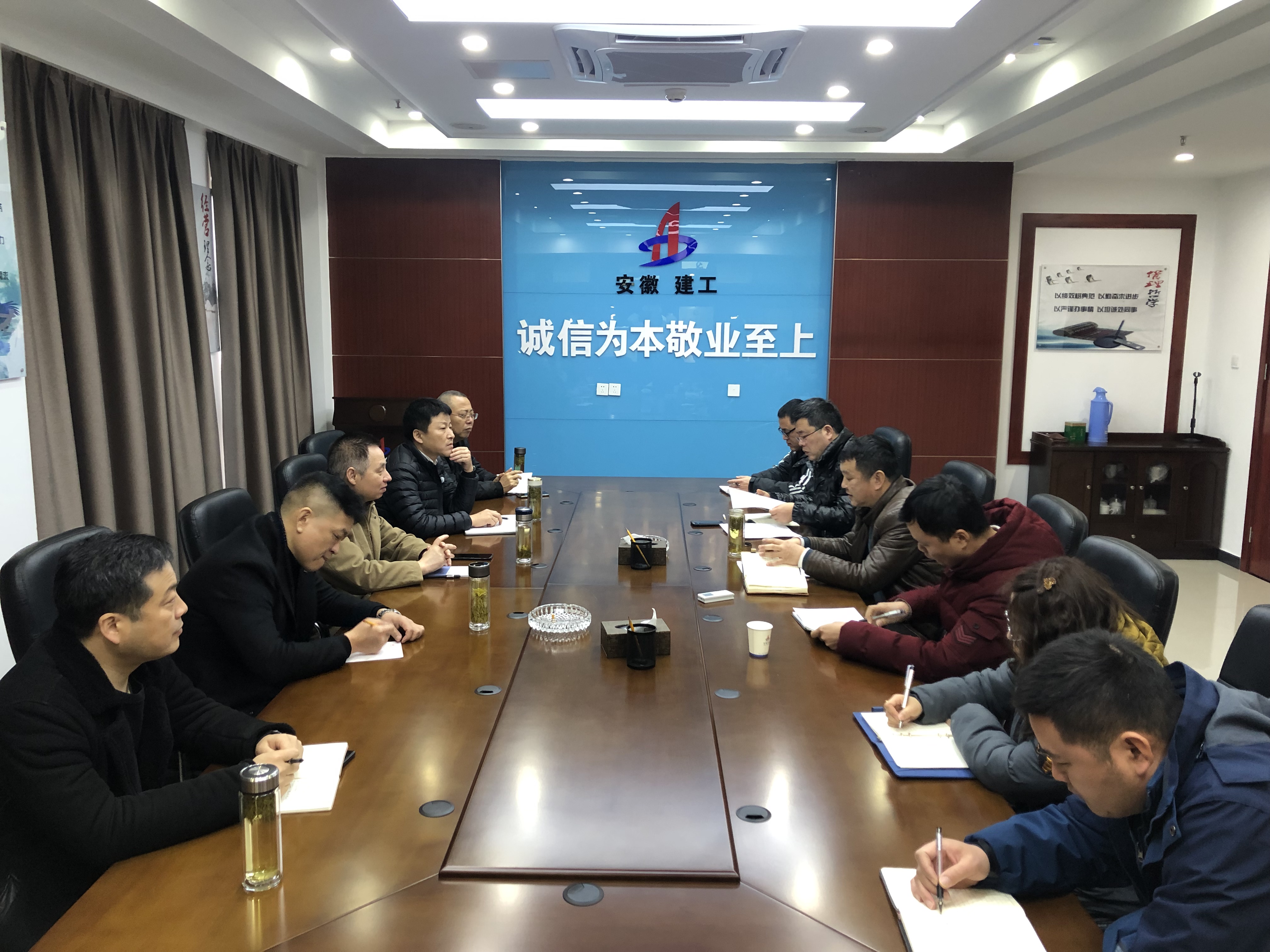 2月14日,公司黨委書(shū)記、董事長(cháng)胡六中赴安慶分公司調研指導工作,公司副總經(jīng)理王軍、財務(wù)副總監李雷、總經(jīng)理助理趙永峰、招標辦主任李紹林,分公司班子成員及機關(guān)、項目部員工參加會(huì )議。