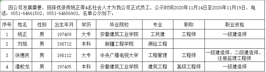 2020年擬錄用社會(huì )人才公示