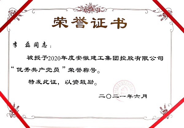 作為一名共產(chǎn)黨員,他處處以黨員的標準嚴格要求自己,聯(lián)系群眾和遵紀守法等各方面都較好的發(fā)揮著(zhù)共產(chǎn)黨員的先鋒模范作用,得到領(lǐng)導和同事們的一致好評,榮獲2020年度“建工集團年度優(yōu)秀共產(chǎn)黨員”稱(chēng)號。