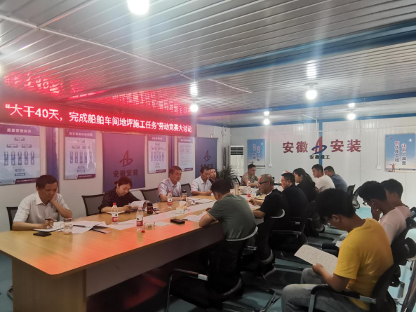安徽安裝蚌埠臨港智能制造產(chǎn)業(yè)園二期工程舉辦“大干40天 確保完成船舶車(chē)間地坪施工任務(wù)”勞動(dòng)競賽主題大討論活動(dòng)