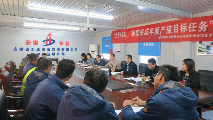 10月18日,安徽安裝在合肥分公司新宇藥業(yè)項目部組織開(kāi)展了“大干80天,確保完成年度產(chǎn)值目標任務(wù)”勞動(dòng)競賽大討論,公司紀委書(shū)記、工會(huì )主席李楊,黨委委員、副總經(jīng)理趙伯平,公司工程管理部經(jīng)理龍海健及合肥分公司領(lǐng)導班子成員、工會(huì )負責同志、競賽項目管理人員等參加。