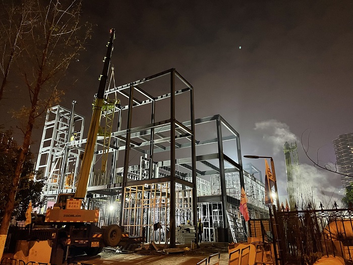 為搶抓工期,項目部迅速調集人力,自開(kāi)工以來(lái),項目一線(xiàn)施工人員一直保持在150人左右,采取24小時(shí)輪班制度,兩班倒的方式,“人歇工地不?!?,在嚴格實(shí)施安全防疫的同時(shí)加班加點(diǎn)搶時(shí)間,趕任務(wù),確保項目現場(chǎng)施工不斷推進(jìn),即使是在不利于施工作業(yè)的雨天,大家也合理安排施工計劃,主動(dòng)放棄休息,在已經(jīng)封頂的一層、二層結構中進(jìn)行水、電、通風(fēng)、內部裝飾等工作,全力以赴加快項目建設進(jìn)度。
