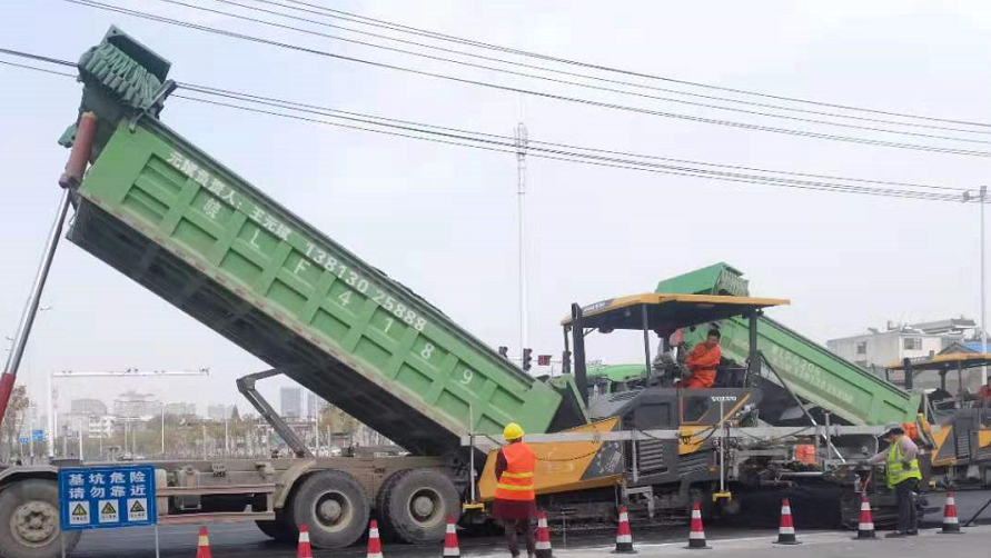 爭分奪秒 大干快上(六) —合肥分公司靈璧縣市政道路EPC項目汴河路主路面面層瀝青攤鋪完成