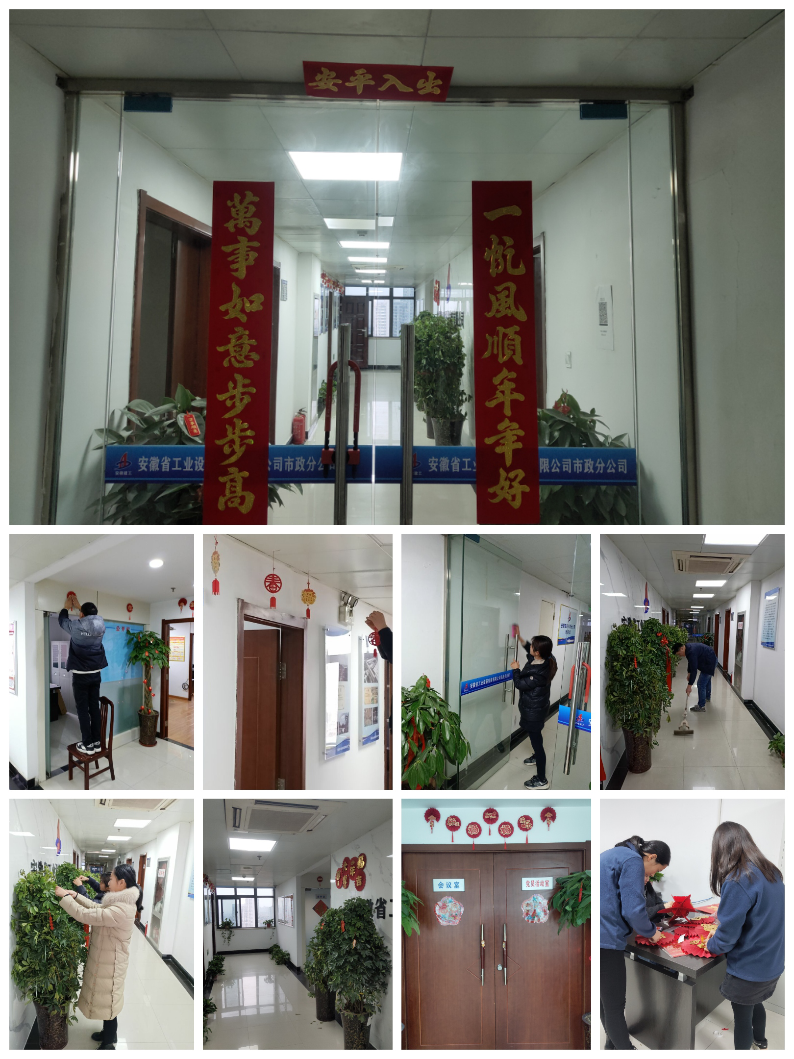 作為市政分公司掛牌成立后的第一個(gè)春節,工會(huì )提前準備好拉花、拉旗等喜慶裝飾物,號召機關(guān)青年、團員自己動(dòng)手張貼。此次活動(dòng)得到大家的積極響應,員工們齊心協(xié)力、分工協(xié)作對辦公區域進(jìn)行衛生清潔與氛圍裝點(diǎn),在機關(guān)走廊懸掛喜慶裝飾品,讓分公司處處充滿(mǎn)濃濃年味,紅紅火火、喜氣洋洋地迎接新一年的到來(lái)。