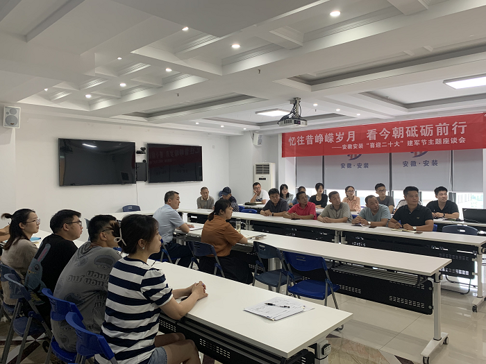 2022年是中國人民解放軍建軍95周年,8月1日下午,安徽安裝公司組織召開(kāi)了“八一”建軍節主題座談會(huì )。座談會(huì )由公司紀委書(shū)記、工會(huì )主席李楊主持,公司退伍軍人、團員青年、入黨積極分子、新入職大學(xué)生、工會(huì )負責同志參加了座談會(huì )。