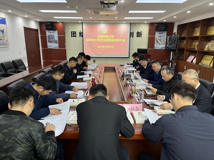 10月27日上午,蚌埠分公司黨支部召開(kāi)換屆選舉大會(huì ),全體黨員參會(huì ),會(huì )議由黨支部書(shū)記王偉主持。