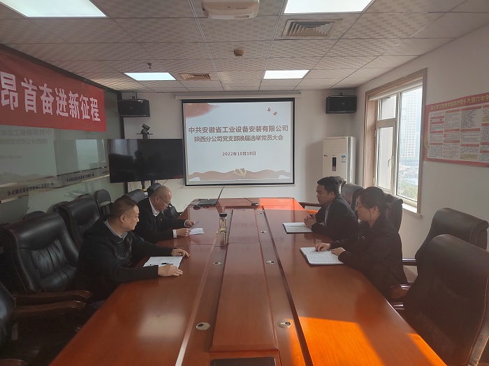 10月18日,陜西分公司黨支部組織召開(kāi)換屆選舉大會(huì )。會(huì )議由分公司黨支部書(shū)記江輝主持,分公司黨員參加會(huì )議。