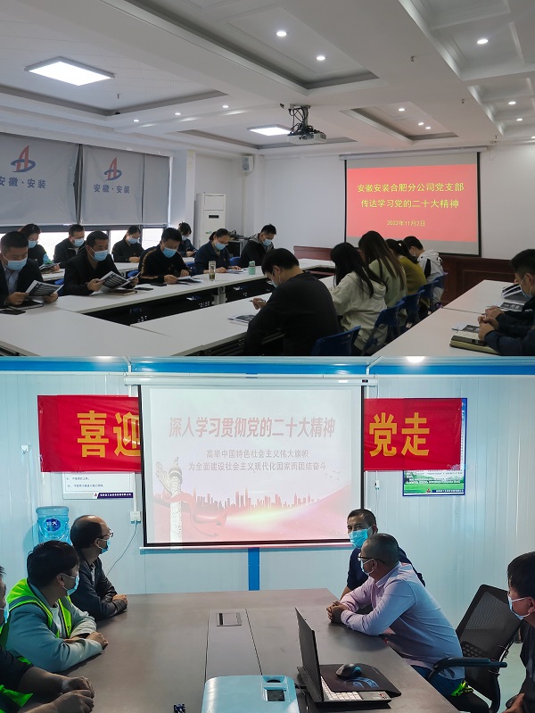11月2日,安徽安裝合肥分公司黨支部召開(kāi)黨員大會(huì ),專(zhuān)題學(xué)習黨的二十大精神。分公司黨支部堅持黨建引領(lǐng),把學(xué)習好、宣貫好黨的二十大精神作為當前和今后一個(gè)時(shí)期的首要政治任務(wù),通過(guò)班子理論學(xué)習會(huì )、支部“三會(huì )一課”、黨員活動(dòng)日等多種形式,以及微信公眾號、網(wǎng)站、宣傳欄、橫幅標語(yǔ)等多種載體,加大對黨的二十大精神宣貫力度,弘揚偉大建黨精神,用先進(jìn)的理論武裝頭腦,指導實(shí)踐,推動(dòng)工作,以?xún)?yōu)異的成績(jì)推動(dòng)黨的二十大精神在基層落地生根、開(kāi)花結果,為推動(dòng)安徽安裝“十四五”高質(zhì)量發(fā)展而不懈努力。
