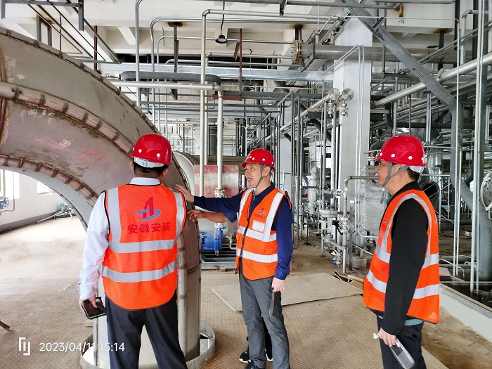 在隨后的調研會(huì )上,項目負責人對項目工程概況、施工進(jìn)度、剩余工程量及下一步施工計劃和節點(diǎn)等基本情況進(jìn)行了具體匯報,胡六中對項目部取得的階段性成果表示充分肯定。他強調,此項目是典型的工業(yè)安裝項目,項目專(zhuān)業(yè)性強、施工難度大,充分彰顯了安徽安裝在行業(yè)領(lǐng)域的高水平,體現了安徽安裝的核心競爭力,該項目的工作經(jīng)驗值得學(xué)習、借鑒和推廣使用。針對下一步工作,胡六中提出四點(diǎn):一是要嚴格管理,精心施工,科學(xué)安排好項目進(jìn)度,在保證安全、質(zhì)量的前提下加快完成建設任務(wù),爭取早日投產(chǎn)達效;二是要抓好項目成本管控,夯實(shí)成本,最大程度做到降本增效;三是要加快推進(jìn)項目后續決算工作,加強工程款回收力度,確保資金盡快回籠;四是要進(jìn)一步做好市場(chǎng)維護與開(kāi)拓,以?xún)?yōu)質(zhì)精品工程,樹(shù)立安徽安裝的品牌形象,形成良好的經(jīng)濟效益和社會(huì )效應,為蕪湖地區發(fā)展貢獻安徽安裝力量。