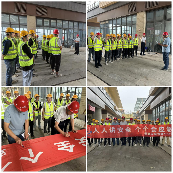 安徽安裝市政分公司下塘鎮商業(yè)街EPC總承包項目水電安裝專(zhuān)業(yè)分包工程項目部舉行2023年“安全生產(chǎn)月”啟動(dòng)儀式 暨集體安全宣誓簽名活動(dòng)