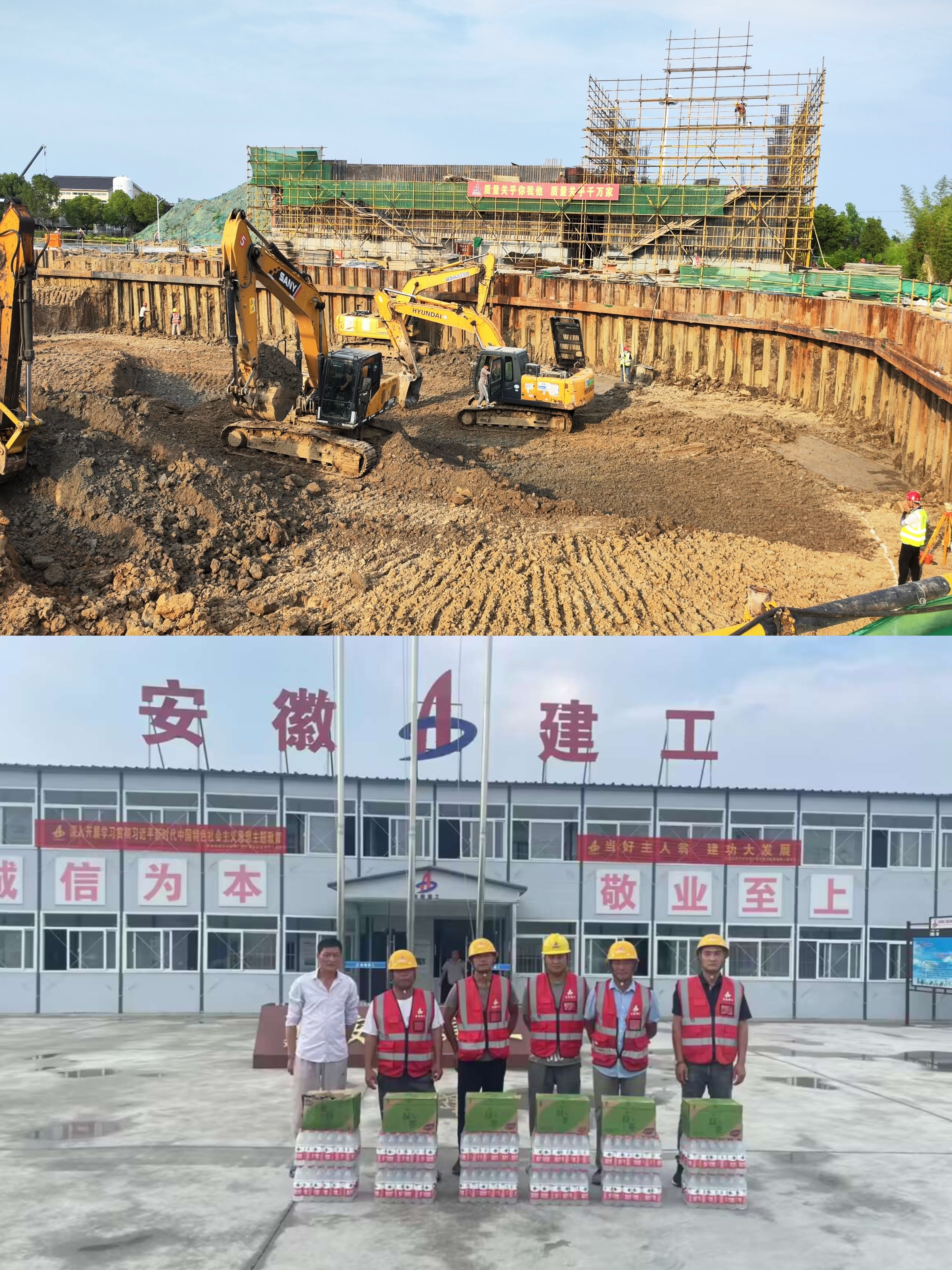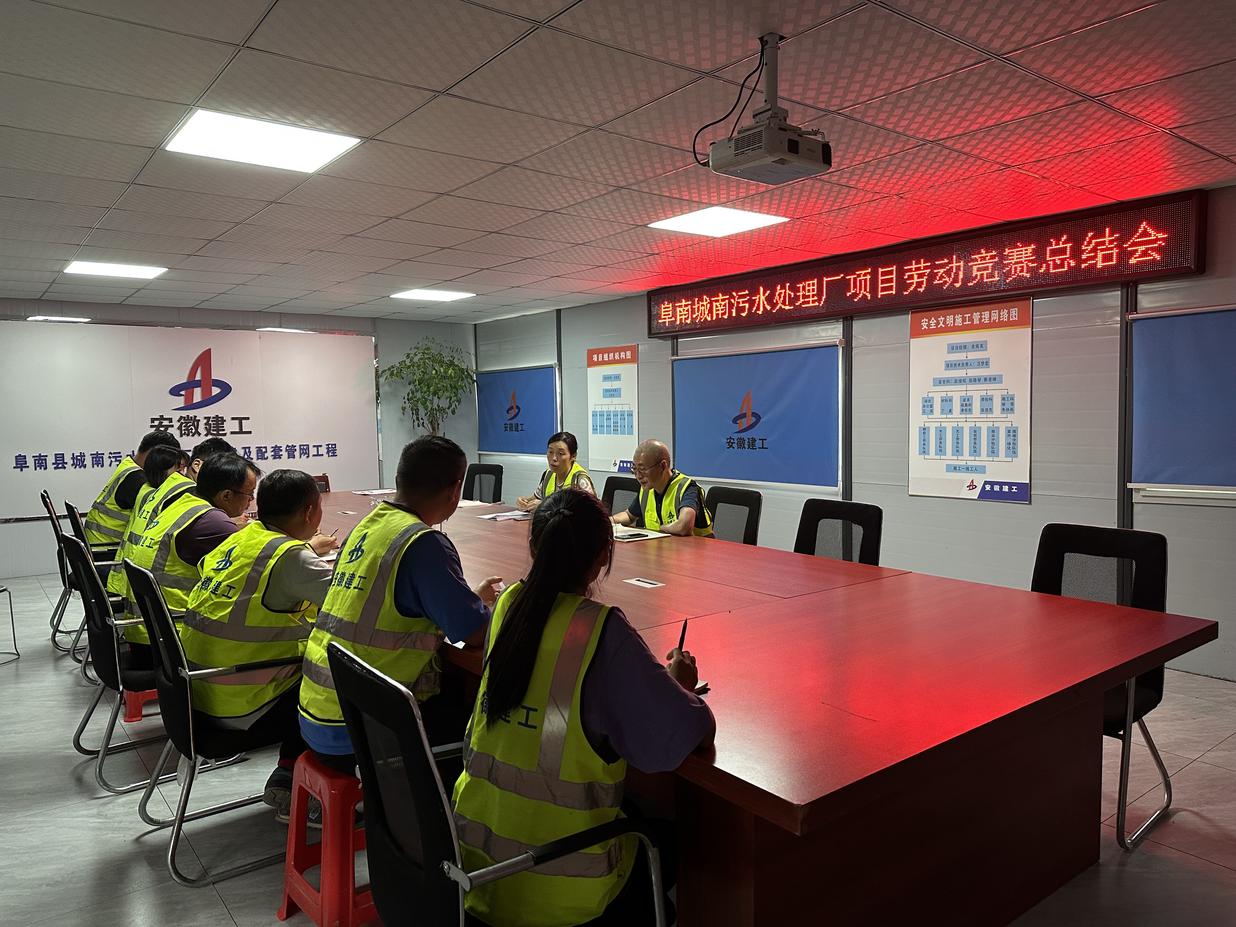 池壁墻面裝飾工程是勞動(dòng)競賽第二階段的重要節點(diǎn),面對高溫酷暑天氣,為保障施工作業(yè)人員安全健康,項目部調整作息時(shí)間,采取“干兩頭、歇中間”的方法,確保勞動(dòng)者身體健康和生命安全。在抓好“干兩頭、歇中間”的同時(shí),加強現場(chǎng)二沉池、水解酸化池、AO池高空作業(yè)和有限空間作業(yè)環(huán)境的安全巡視巡查,全程落實(shí)監測、監護和通風(fēng)措施,對各參建班組防暑降溫食品、藥品及時(shí)補充發(fā)放,并制定切實(shí)可行的安全應急預案,確保了安全生產(chǎn)受控無(wú)事故。