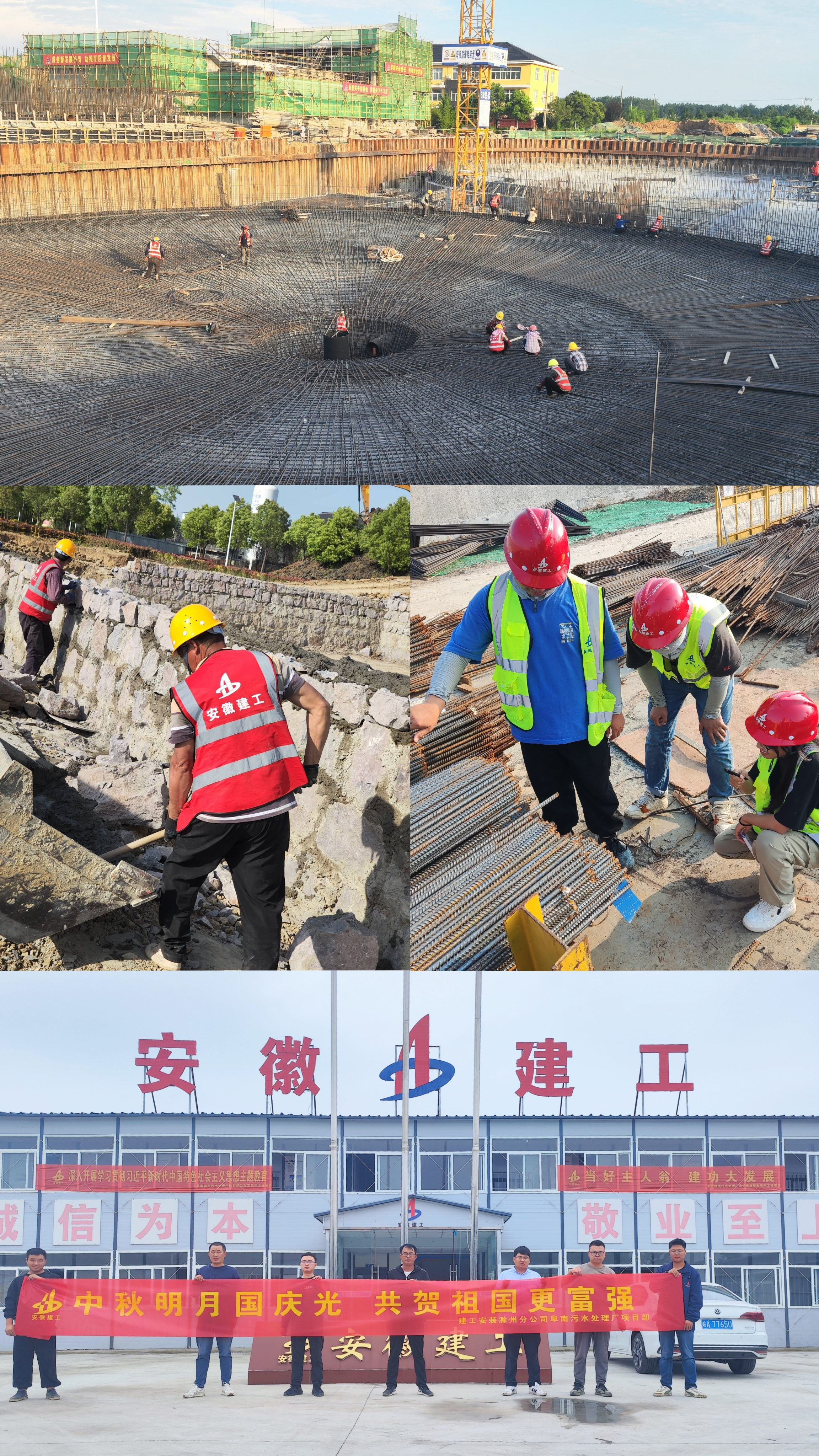 在阜南縣城南污水處理廠(chǎng)項目施工現場(chǎng),為了確保10月底項目全面完工這一目標,項目部建設者們正在全力以赴加速施工進(jìn)度。放眼望去,只見(jiàn)到處都是一片熱火朝天的工作景象,有的在綁扎筏板鋼筋,有的在測量標高,有的在盤(pán)點(diǎn)入場(chǎng)材料,有的在砌筑擋土墻……本著(zhù)“目標不變、任務(wù)不減、標準不降、干勁不松”的原則,項目部參戰人員主動(dòng)放棄雙節假期,共同堅守奮戰,吹響了全面完成項目施工任務(wù)的沖鋒號!
