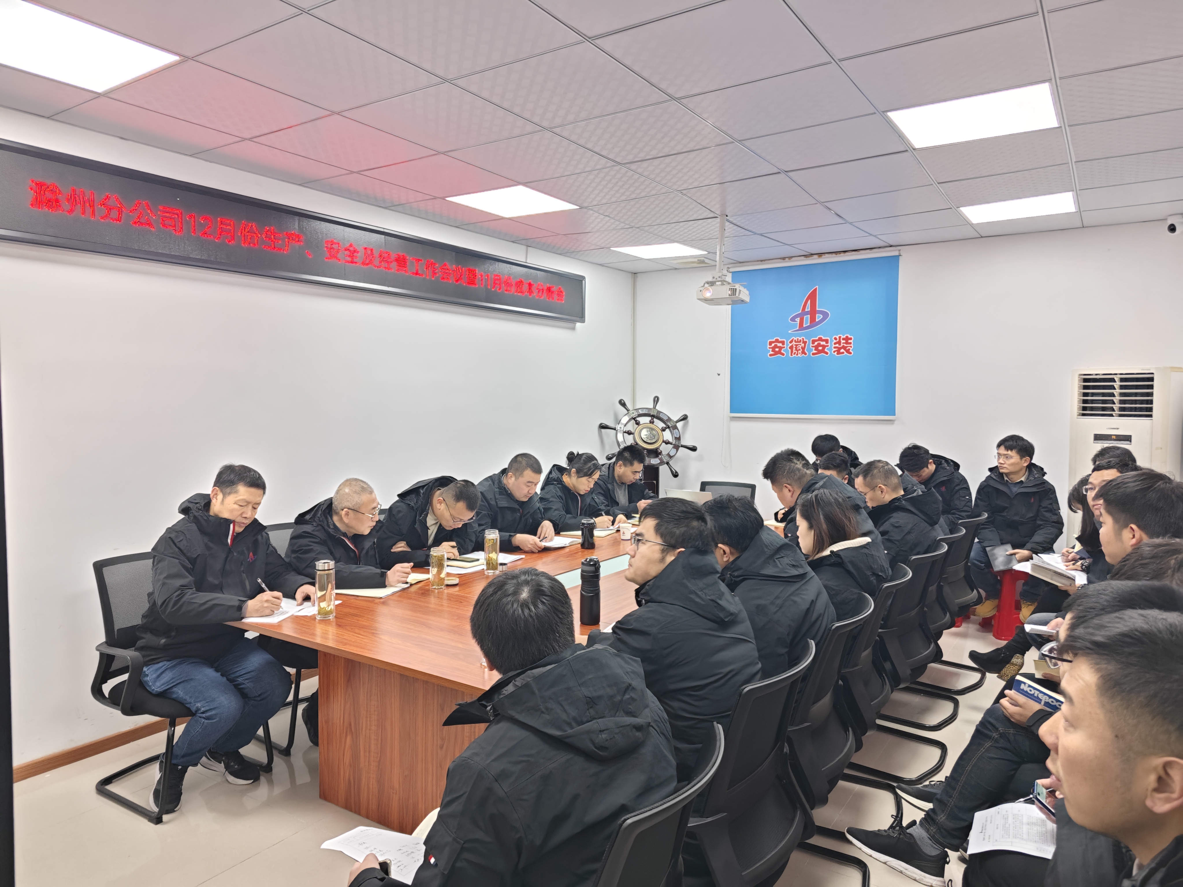 2023年12月29日上午,建工安裝滁州分公司組織召開(kāi)12月份生產(chǎn)、安全、經(jīng)營(yíng)暨成本分析會(huì )。分公司領(lǐng)導班子成員、各部門(mén)負責人、項目負責人及工程管理部全體員工參加會(huì )議,會(huì )議由分公司副經(jīng)理張漢軍主持。