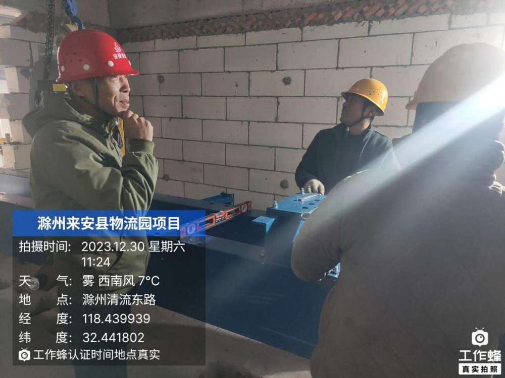 來(lái)安縣農副產(chǎn)品冷鏈物流產(chǎn)業(yè)園電梯安裝工程現場(chǎng),項目經(jīng)理帶班對電梯機房進(jìn)行進(jìn)度、質(zhì)量、安全檢查,確保電梯安裝符合工程建設標準。