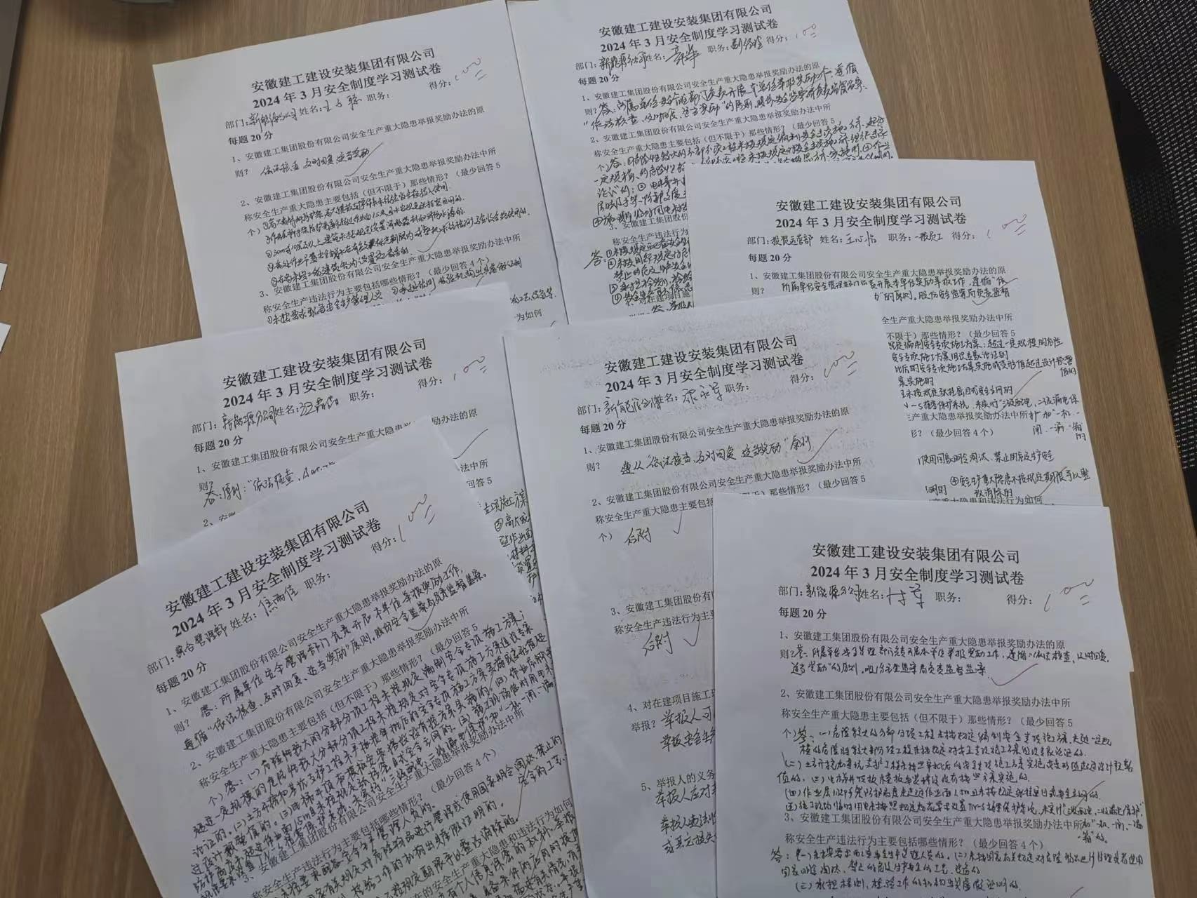 會(huì )上,郭萬(wàn)升帶領(lǐng)全體員工集中學(xué)習了《安徽建工集團股份有限公司安全生產(chǎn)重大隱患舉辦獎勵辦法》,他強調分公司全體員工要扎實(shí)工作,注重細節,堅持“安全第一,預防為主,綜合治理,以人為本”十六字方針,以良好的精神面貌和充沛的精力,全身心投入到安全生產(chǎn)及各項工作中。會(huì )議結束后,分公司以書(shū)面考試形式對全員進(jìn)行了測試,以鞏固學(xué)習成果。