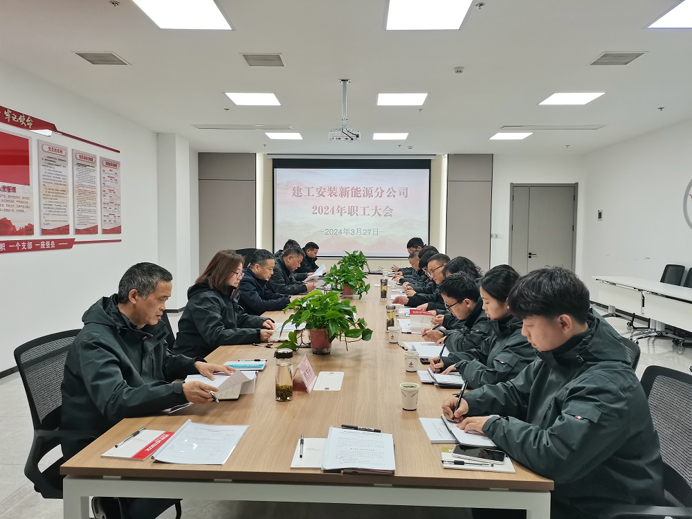 李雷首先向與會(huì )人員傳達了建工控股三屆一次職代會(huì )暨2024年工作會(huì )議和建工安裝十七屆四次職代會(huì )會(huì )議精神。他對新能源分公司2023年做出的努力表示肯定,并就2024年工作提出四點(diǎn)指導意見(jiàn):一是堅定信心,面對機遇和挑戰,要順勢而為、乘勢而上,積極搶占新能源市場(chǎng)份額;要有想干事干成事的必勝信心,解放思想、勇于創(chuàng )新,不斷提升核心競爭力。二是強化管理,秉承“依規則辦事、用制度提效”的管理理念,結合實(shí)際持續加強制度建設,提升成本管控、防范各類(lèi)風(fēng)險,合理配置資源、提高經(jīng)濟效益,不斷推進(jìn)企業(yè)“合規合法、高質(zhì)高效”的良好發(fā)展態(tài)勢。三是嚴格自律,要堅定理想信念,在思想上筑牢拒腐防變的堅強防線(xiàn),從行動(dòng)上落實(shí)廉潔自律的嚴格要求,只有清白做事、干凈做人,才能安心工作、快樂(lè )生活,才能塑造企業(yè)風(fēng)清氣正的良好政治環(huán)境。四是團結協(xié)作,“人心齊、泰山移 ”,分公司全體員工要凝聚共識、群策群力,以銳意創(chuàng )新的勇氣、蓬勃向上的朝氣、敢于擔當的志氣砥礪奮進(jìn),努力開(kāi)創(chuàng )新能源分公司綠色發(fā)展新局面。
