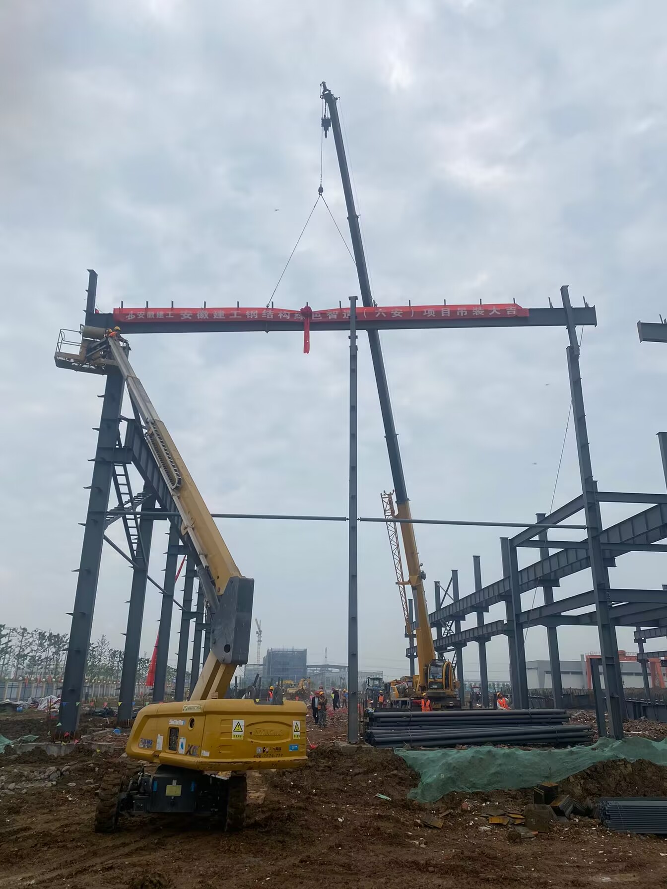 5月1日上午8點(diǎn)18分,建工安裝合肥分公司安徽建工鋼結構綠色智造(六安)項目順利開(kāi)始“大跨度屋面梁吊裝作業(yè)”。