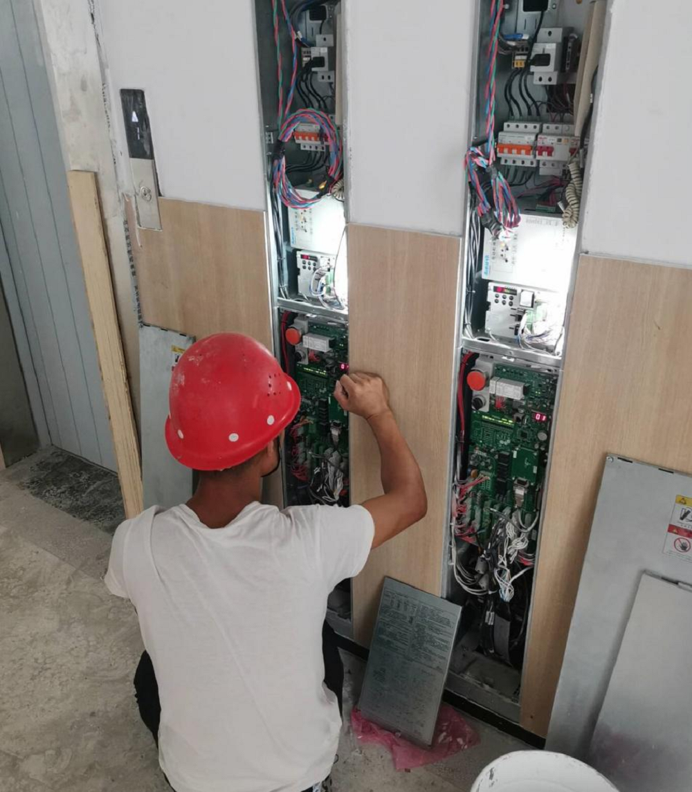 蚌埠自貿區山香學(xué)校項目施工人員正在進(jìn)行無(wú)機房電梯檢驗