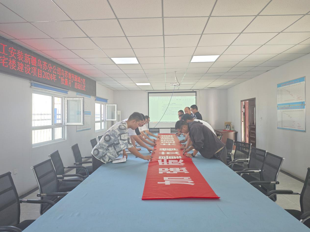 為落實(shí)好2024年全國“質(zhì)量月”活動(dòng)要求,近日,建工安裝新疆烏蘇分公司及項目部舉行“質(zhì)量月”活動(dòng)啟動(dòng)動(dòng)員會(huì ),強化全員、全方位、全過(guò)程質(zhì)量管理,營(yíng)造濃厚質(zhì)量文化氛圍,全面拉開(kāi)2024年“質(zhì)量月”活動(dòng)的序幕。