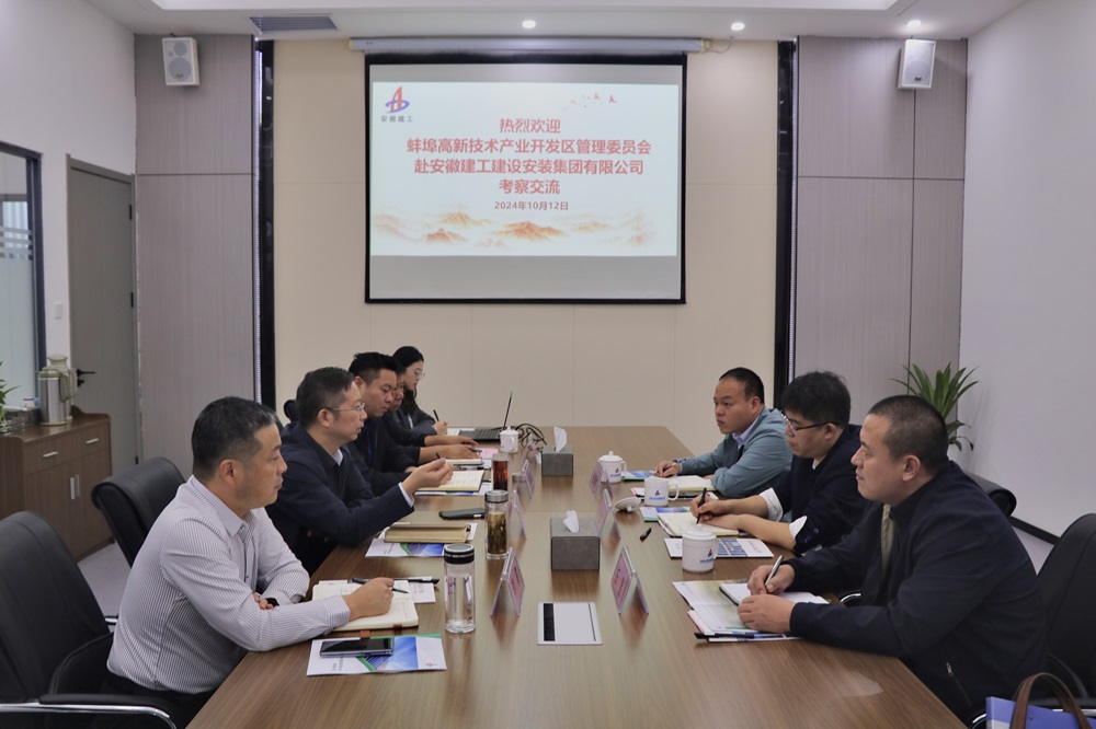 會(huì )上,朱珍宏重點(diǎn)介紹了安徽建工集團三大戰略布局基本情況以及建工安裝集團發(fā)展歷程、業(yè)務(wù)范圍、核心競爭優(yōu)勢等;方浩亮分享了蚌埠高新區和自貿區在電子信息、高端制造和新材料新能源等領(lǐng)域所取得的成就與獨特技術(shù)優(yōu)勢。雙方重點(diǎn)圍繞產(chǎn)業(yè)投資、園區建設、技術(shù)創(chuàng )新、光伏儲能方面充分交換意見(jiàn),為下一步合作打下堅實(shí)的基礎。
