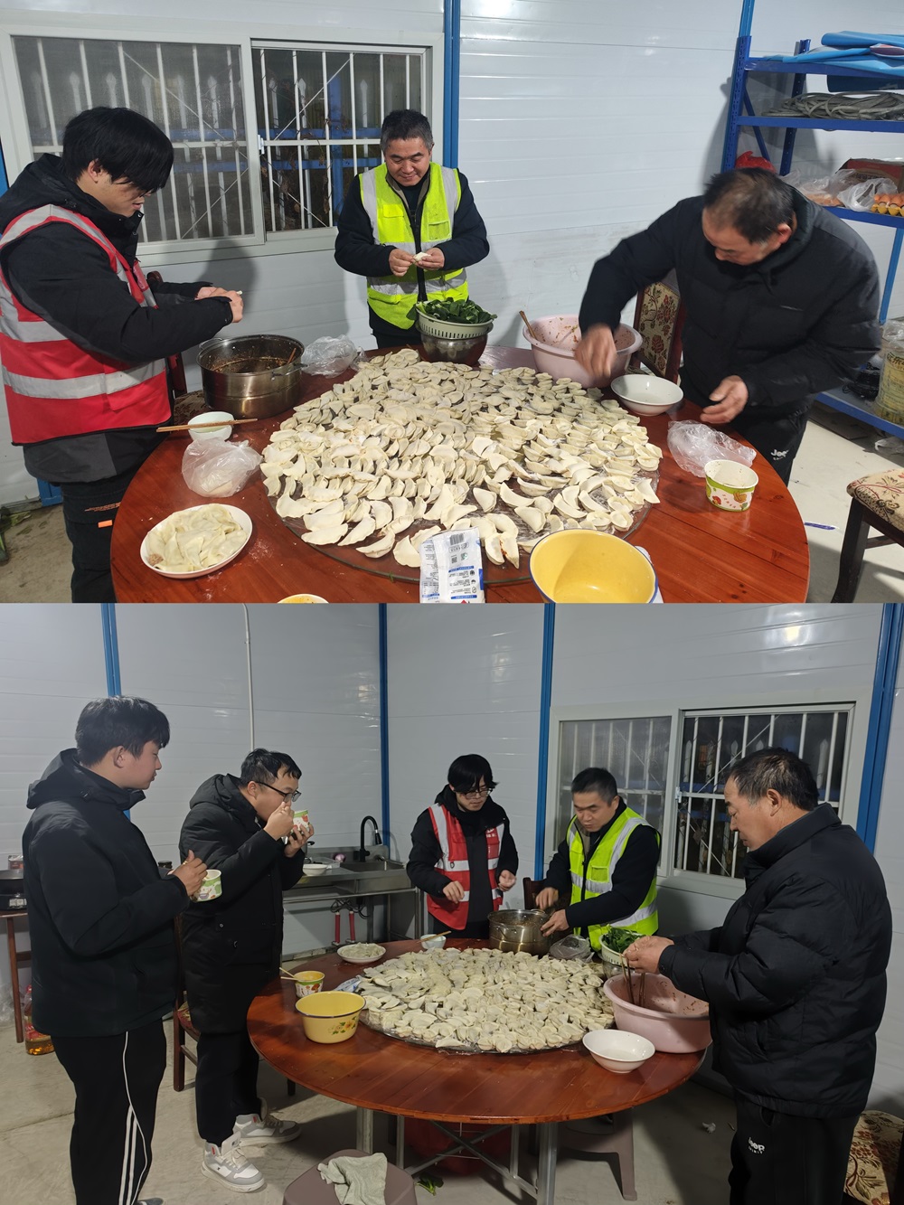 在新橋智能制造產(chǎn)業(yè)園一階段一標項目機電安裝工程項目部,一場(chǎng)同樣歡樂(lè )的包餃子活動(dòng)也在如火如荼地進(jìn)行著(zhù)。項目部的員工們齊聚一堂,大家分工合作,有的負責調餡,確保餡料的口味恰到好處;有的負責擺放餃子,將包好的餃子整齊地排列在托盤(pán)上。雖然大家都很忙碌,但空氣中洋溢著(zhù)歡聲笑語(yǔ)。大家一邊包餃子,一邊交流著(zhù)項目上的工作進(jìn)展和生活趣事,氛圍融洽和諧。