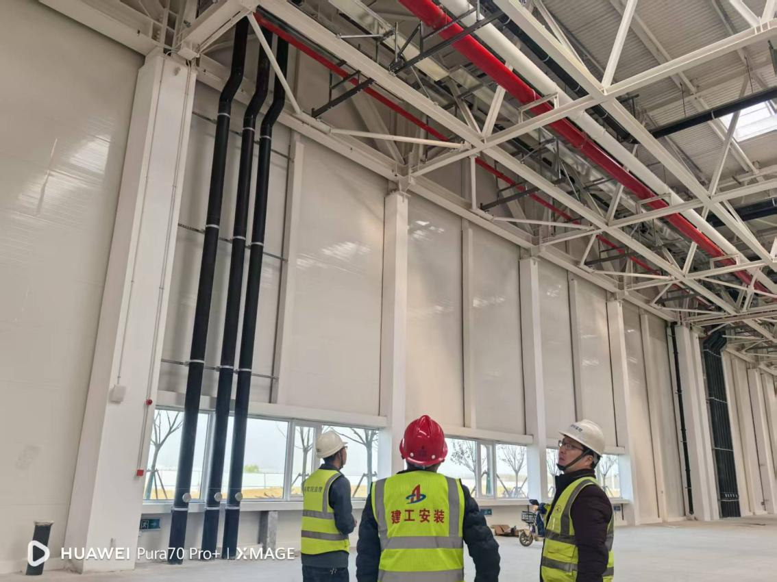 自一季度以來(lái),項目部以“2025開(kāi)局即決戰”的昂揚斗志,迅速掀起“大干快上”施工熱潮。對各車(chē)間、各系統剩余工程量展開(kāi)全面梳理統計,同時(shí)針對剩余工程量堅持每日召開(kāi)專(zhuān)題會(huì ),以倒排計劃為“發(fā)令槍”,對照時(shí)間節點(diǎn)要求各班組加班加點(diǎn)、不折不扣完成。截至發(fā)稿,車(chē)間一大面積施工基本完成,形象進(jìn)度完成約96%;車(chē)間二形象進(jìn)度完成約90%;車(chē)間四形象進(jìn)度完成約92%;站房一各設備管道基本安裝完成,正在調試中,形象進(jìn)度完成約90%。目前,各車(chē)間工藝生產(chǎn)均已進(jìn)場(chǎng),燃氣鍋爐點(diǎn)火成功、空壓站完成試運行、工藝24h冷凍水、恒溫恒濕空調均已投入使用;各車(chē)間工藝區送電已到位、供水完成。
