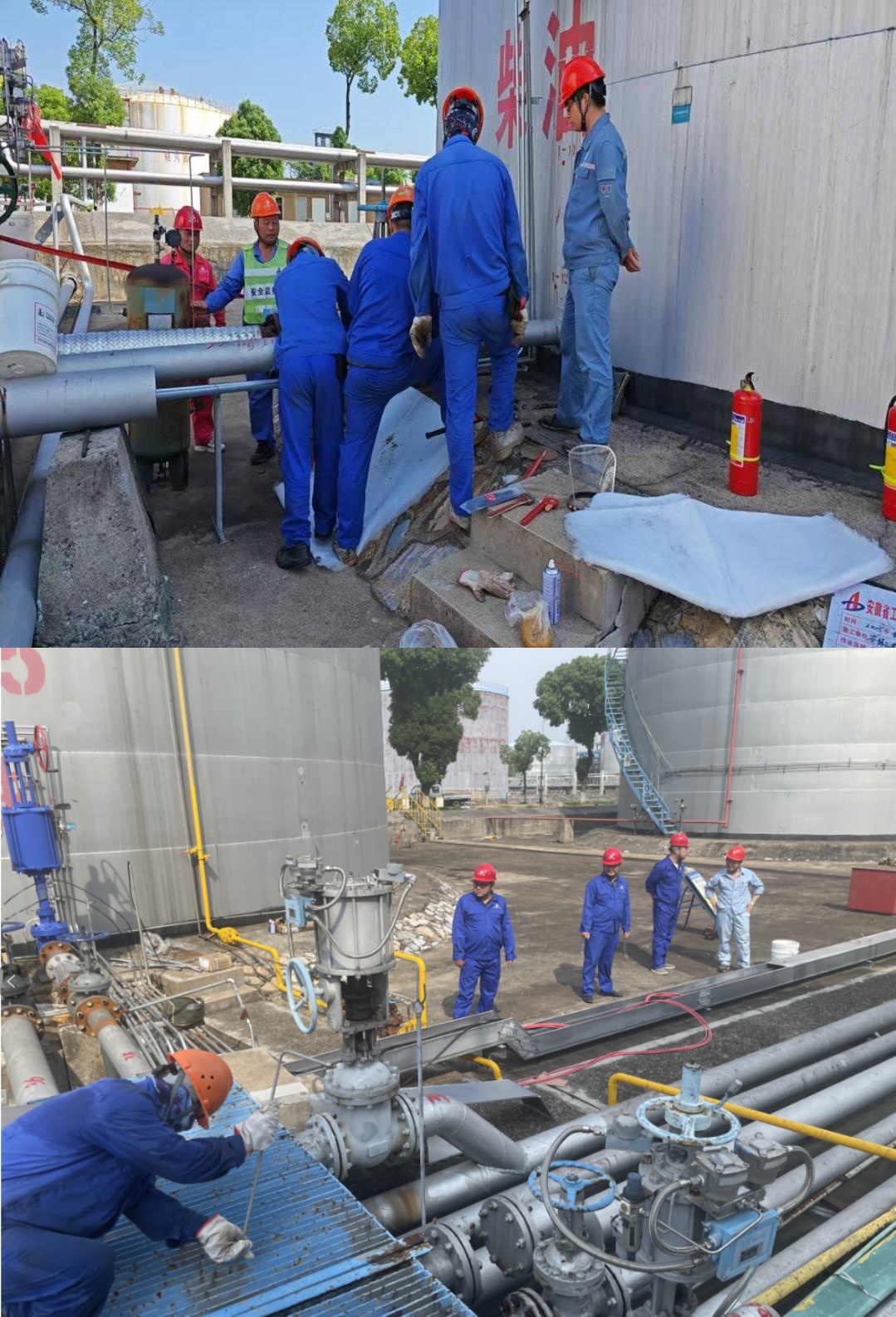 在培訓演練的同時(shí),隱患排查工作也在同步扎實(shí)推進(jìn)。市政公司聯(lián)合安慶石化儲運部、設備工程部及青島安工院,對框架協(xié)議項目進(jìn)行現場(chǎng)專(zhuān)業(yè)指導聯(lián)合檢查。針對檢查出的安全隱患,及時(shí)下發(fā)整改通知單,各班組迅速響應、逐項整改并反饋,形成了隱患排查治理的閉環(huán)管理。隨后,市政公司黨支部充分發(fā)揮黨建引領(lǐng)作用,支委班子深入儲運部五、七等罐區進(jìn)出口管線(xiàn)增設緊急切斷閥門(mén)等項目一線(xiàn),與儲運部作業(yè)區領(lǐng)導圍繞項目安全管理深入研討,并實(shí)地檢查施工進(jìn)度與安全防護措施落實(shí)情況,將黨建工作與安全生產(chǎn)深度融合,全力保障項目安全有序推進(jìn)。