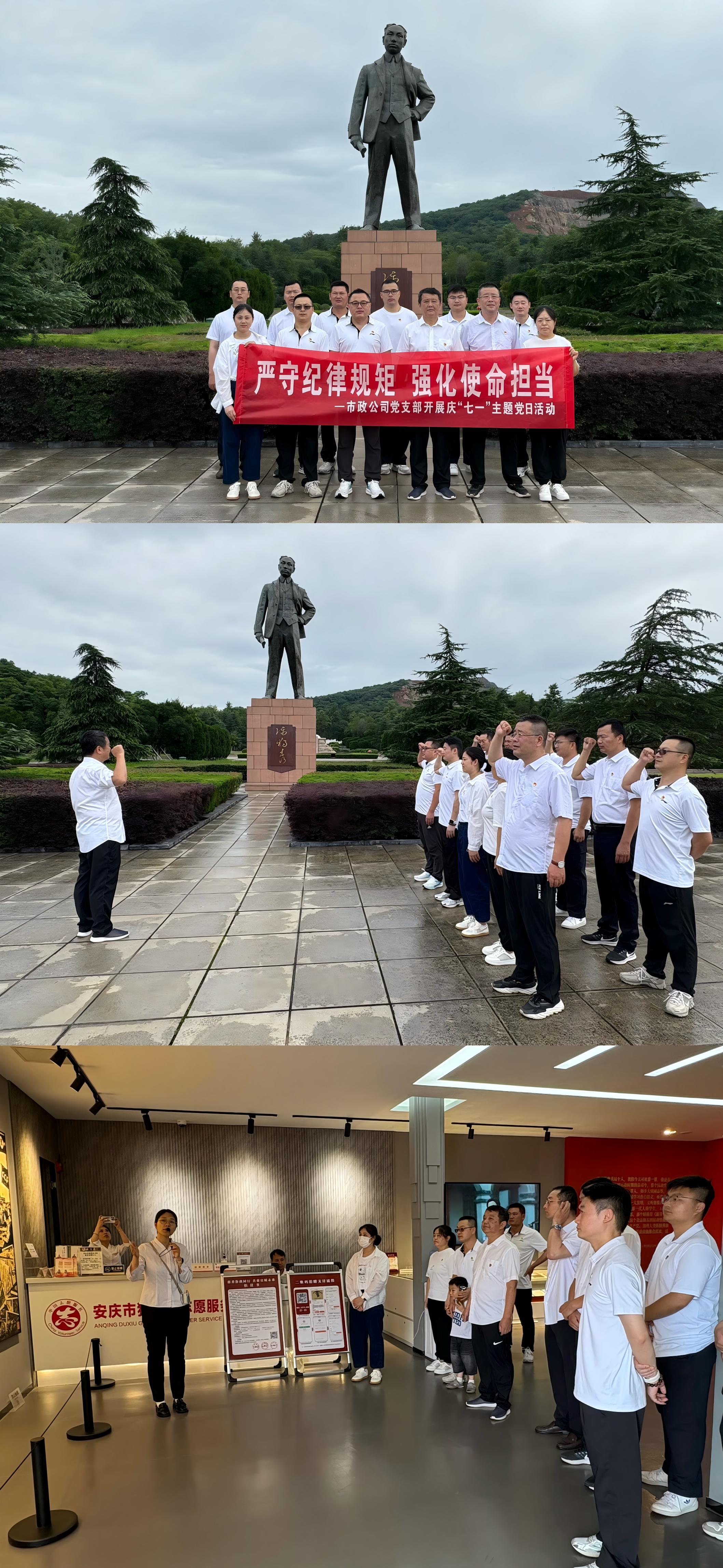 6月28日,建工安裝市政公司黨支部組織全體黨員干部赴安慶市獨秀園愛(ài)國主義教育基地開(kāi)展“嚴守紀律規矩 強化使命擔當”主題黨日活動(dòng)。
